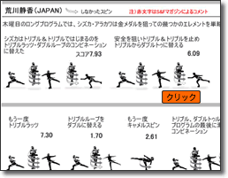 万一上のサイトがアクセス過剰で閲覧できない場合(たまにある)は、以下のサイトをお試しください。 同じく荒川選手の動画が幾つか観れます。