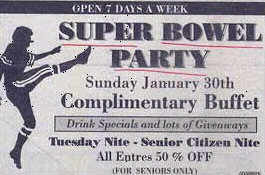 Party(スーパーボール)が正しいスペルです。 上のBowel(バウウェル)は”内臓”という意味で、良く小学生等がする”かなりマヌケな間違い”です。