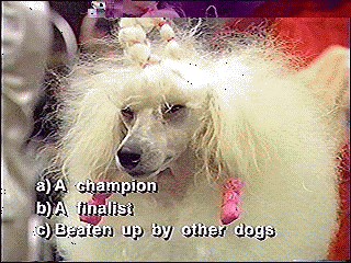 見て下さいこのクリエイティブなヘアースタイル。 この犬はこの後どうなるのでしょう? A)チャンピオンになる B)最終選考まで残る C)他の犬にナメられて痛めつけられる