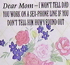 ”グリーティングカード”なる挨拶の手紙を一緒に添えて贈るものです。 時に内容が次第で受け取った方は、感動に胸を詰らせる事も有ります。 それらカードは近くのマーケット等で時期になると、既にうつくしい文が書いてあるものが沢山出回るようになるのですが、今回は”母の日”に因んで町に出回る心温まるグリーティングカードをネタにレターマンがギャグをカマしました。