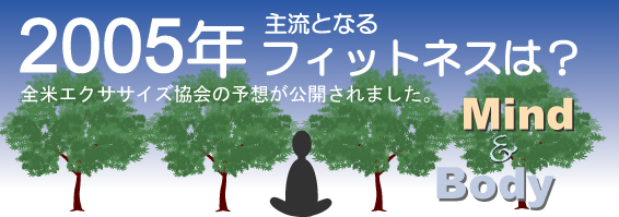 The American Council on Exercise (ACE)が、今年(2005年)中にアメリカのフィットネスセンターの主流になるであろうフィットネスについて、予測を公表しました。