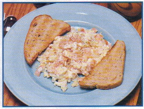 5.中火で常に掻き混ぜて、卵が固まったら出来上がりです。